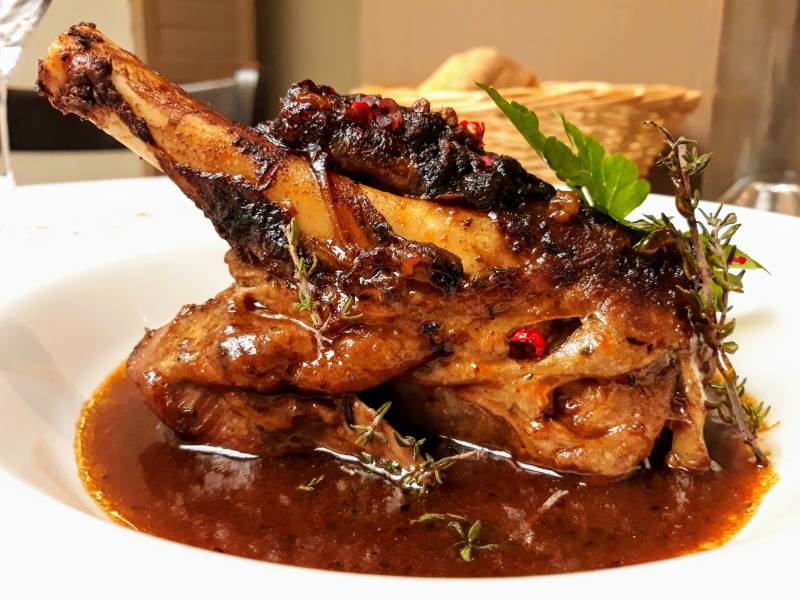 La Souris d'agneau est un classique de la cuisine française qui demande patience et technique. Au Bouchon Normand, nous la préparons dans la plus pure tradition, garantissant une chair qui se détache de l'os à la fourchette.